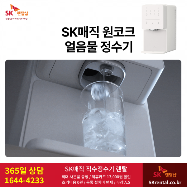 #SK원코크정수기 #얼음물 #동시출수 #아이스룸교체 #UV안심살균 #대용량제빙 #넉넉한보관 #100도씨온수 #올직수형 #나노필터교체 #타사보상혜택 #제휴카드할인 #사은품