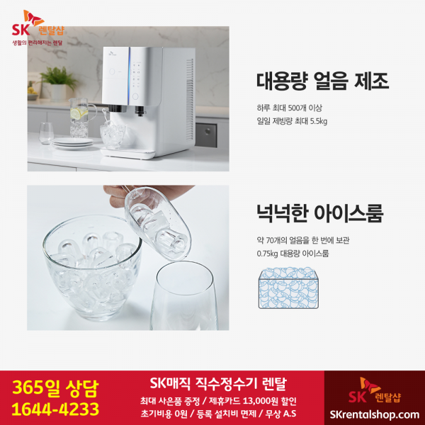 얼음정수기추천, 대용량제빙기, 아이스룸, 무상교체, 나노필터, 미네랄물, 직수형, 얼음물, 스테인리스관, 올인원, SK매직, 케어서비스, 사은혜택, 할인행사