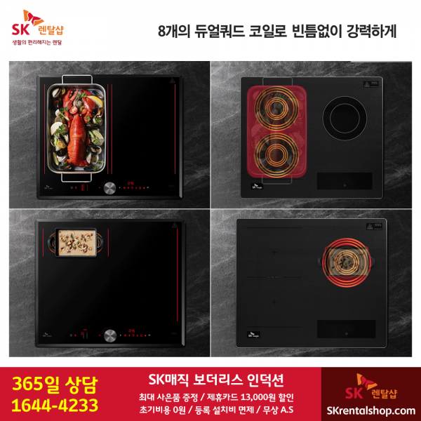 #SK인덕션렌탈 #전기레인지 #건강가전 #주방위생 #간편청소 #최고화력 #음식조리 #가족식사 #새상판교체 #다이얼조작 #안전장치 #컬러변경 #용기감지 #듀얼쿼드코일