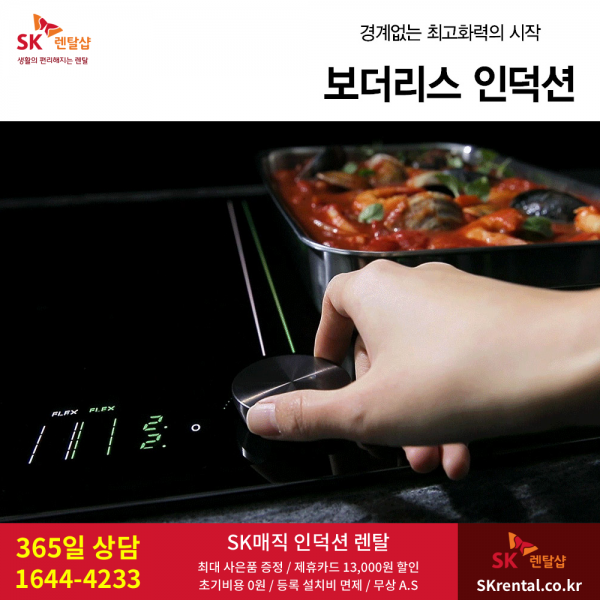 SK매직인덕션렌탈, 보더리스, 전기레인지, 가스불교체, 유해가스, 일산화탄소, 건강한주방, 최고화력조리, 안전장치시스템, 다이얼조작, 간단한청소, 독일쇼트사, 새상판교체, 할인행사, 최대사은품